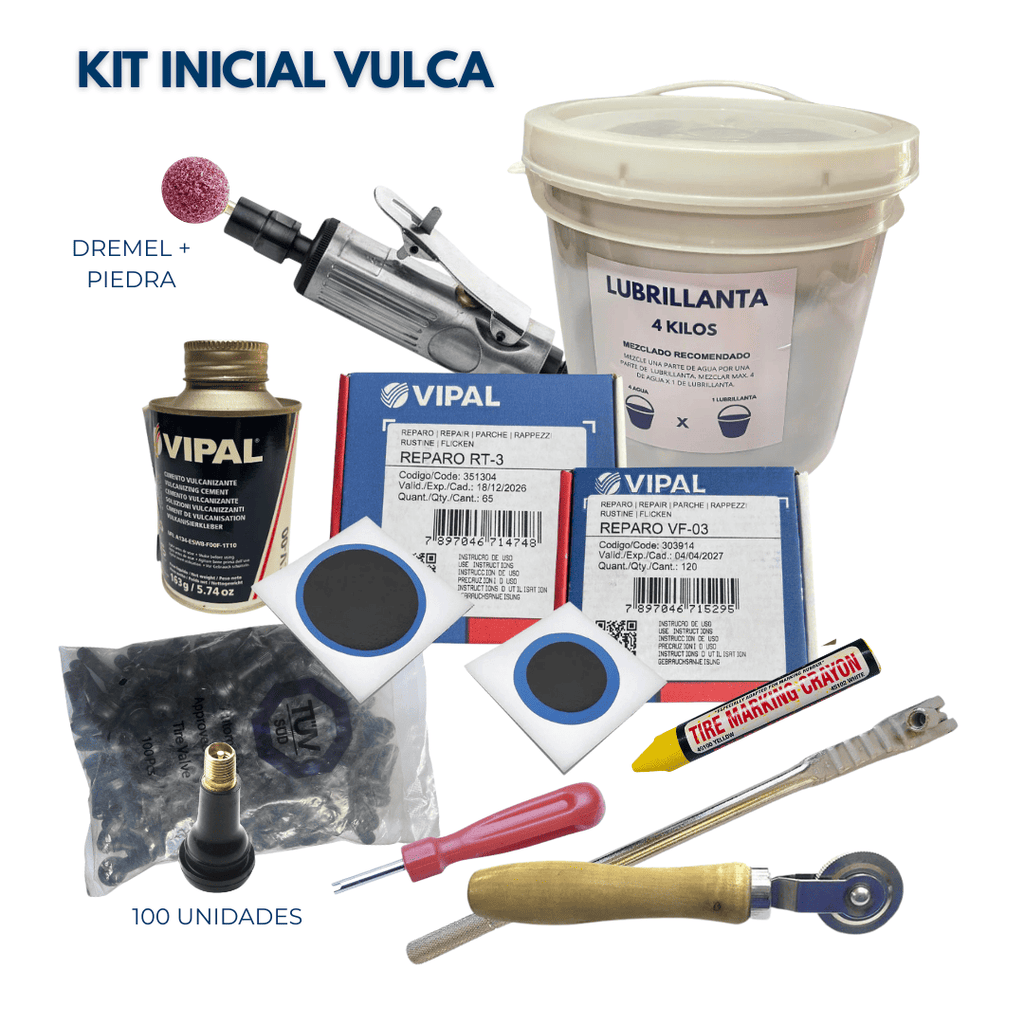 🔧Kit Inicial Vulca | Para Talleres de Neumáticos | Incluye Insumos VIPAL + Herramientas Clave y DREMEL